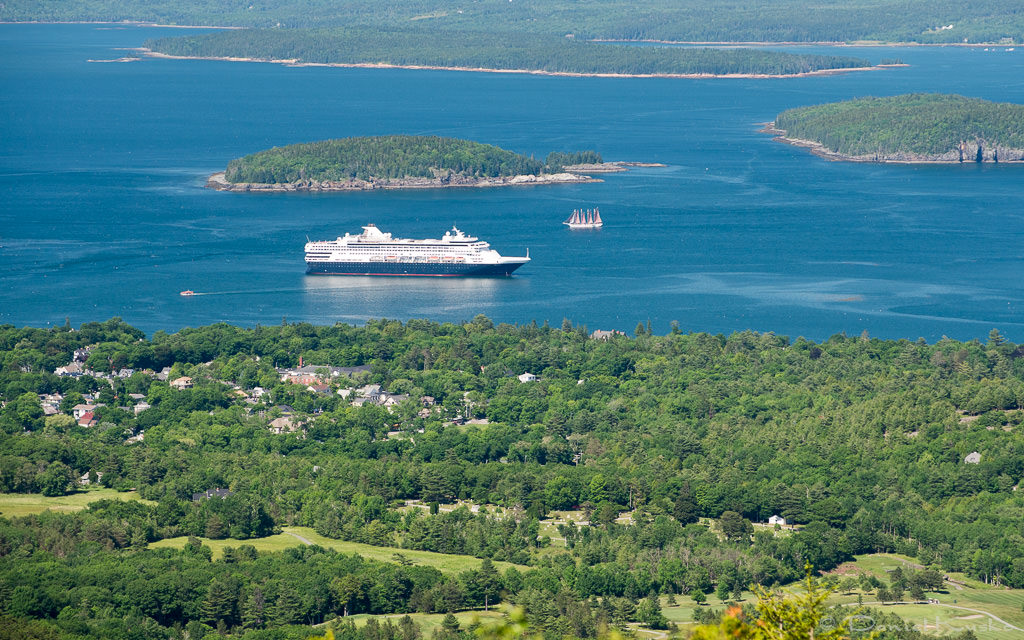 Looking down from Cadillac mountain you can see the town of Bar Harbor.